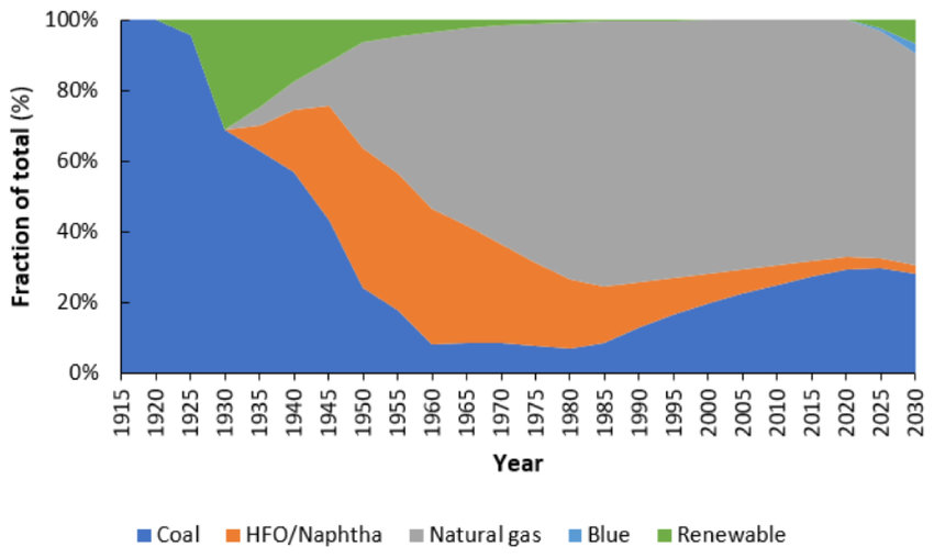 Hydrogen, carbon dioxide, and nitrogen can be the low-level feedstocks for most petrochemical production. Hydrogen is the most challenging because it must be unbearably cheap to compete with fossil hydrocarbons. Alkaline electrolyzers appear to be making the most progress in scale and cost so far, but there are a few other possible options.